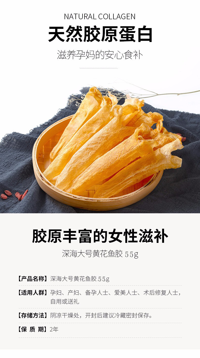 黄花胶干货正品鱼胶野生深海黄花胶鱼鳔鱼肚孕妇滋补55g礼盒装